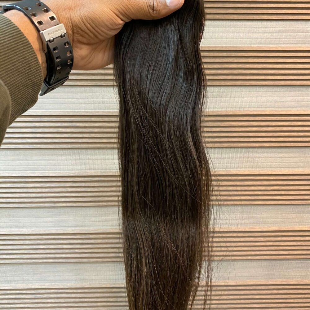 Raw Indian Temple Human Hair Straight Texture. It is available in long lengths 26″ 28″ 30″.